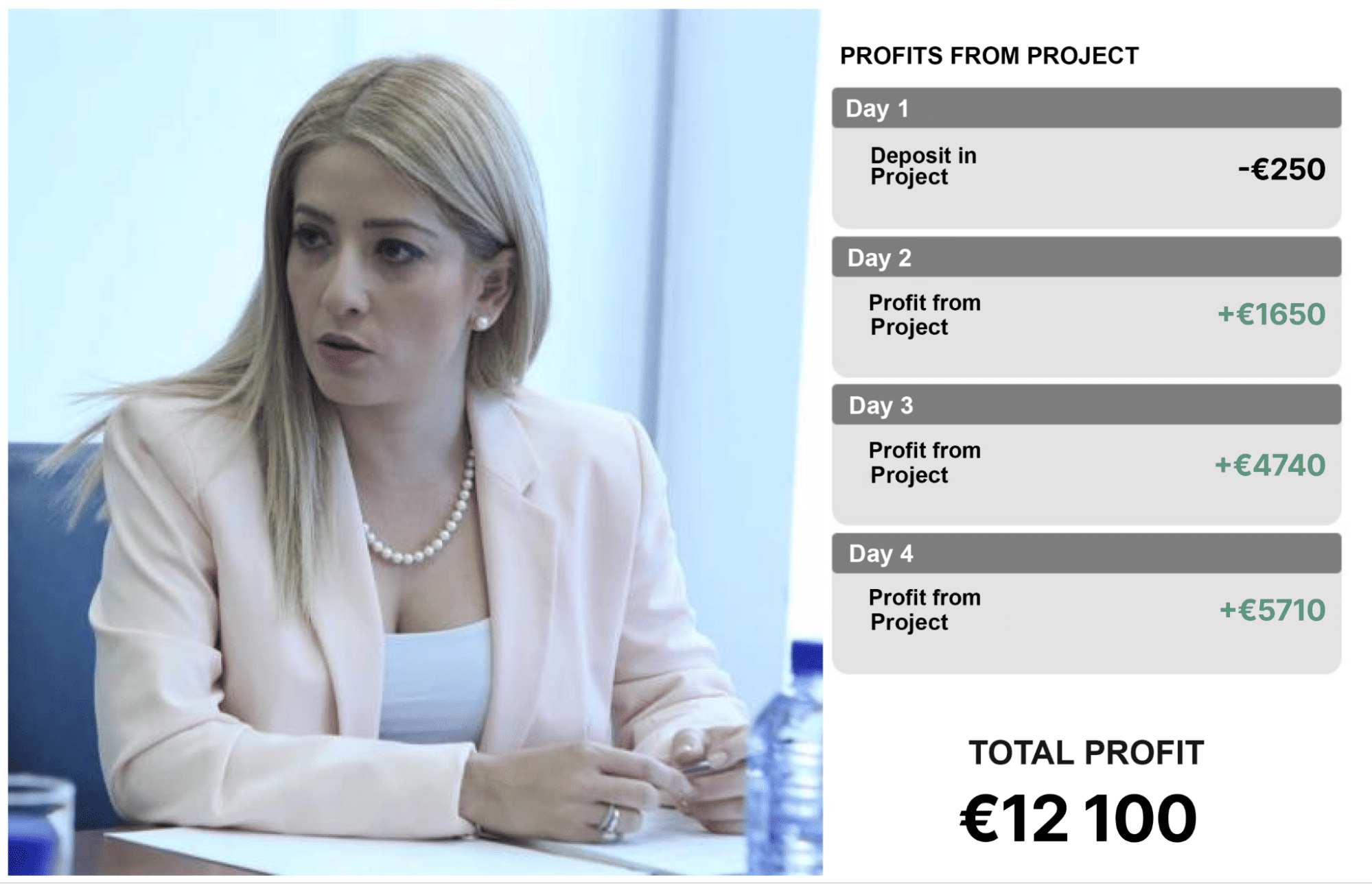 The platform combines automated tools, analytical algorithms, and a user-friendly interface for users without experience. Invest €250 to start earning €5,000 weekly," said one of Cyprus' most influential women.